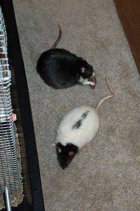 But he gets distracted. Snip is his mortal enemy. He climbs onto the ledge and taunts Snip through the bars. Teasing Snip is more fun than gnawing a nut! Snip squeaks back at him. |